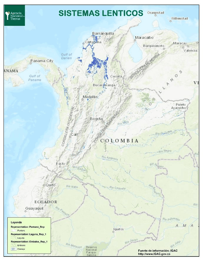 Ámbito nacional y en municipios con presencia e influencia de sistemas lénticos.