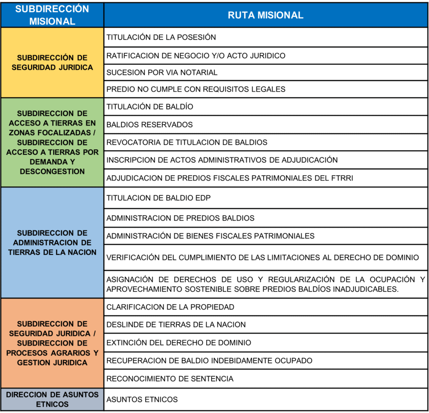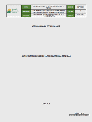 En este sentido, la guía de rutas misionales de la entidad constituye un marco de referencia conceptual y normativo que orienta la aplicación adecuada de las rutas de atención misional a cargo de la ANT, con base en los análisis técnico-jurídicos desarrollados en el marco de los Planes de Ordenamiento Social de la Propiedad Rural (POSPR) y otras estrategias de intervención institucional de la entidad.